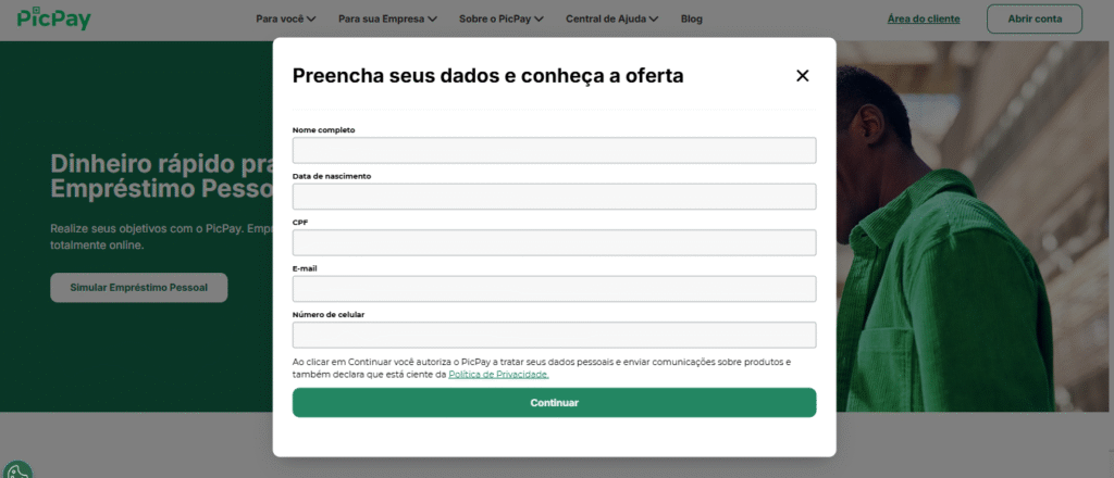 Qualquer pessoa com mais de 18 anos, CPF válido e uma conta ativa no PicPay pode receber uma oferta de empréstimo.
